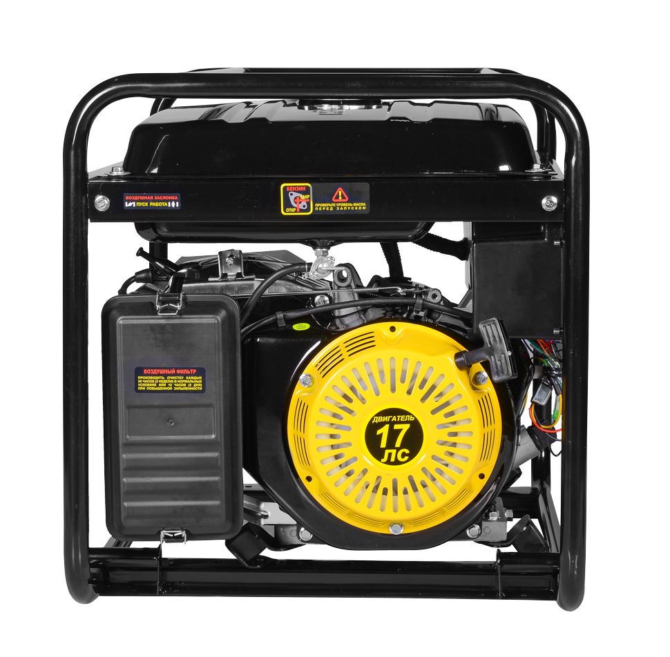 Бензиновый электрогенератор Штепсельные вилки (по типу и количеству розеток на панели)Свечной ключ и вороток Комплект резиновых опор с гайками Паспорт (руководство по эксплуатации) Коробка